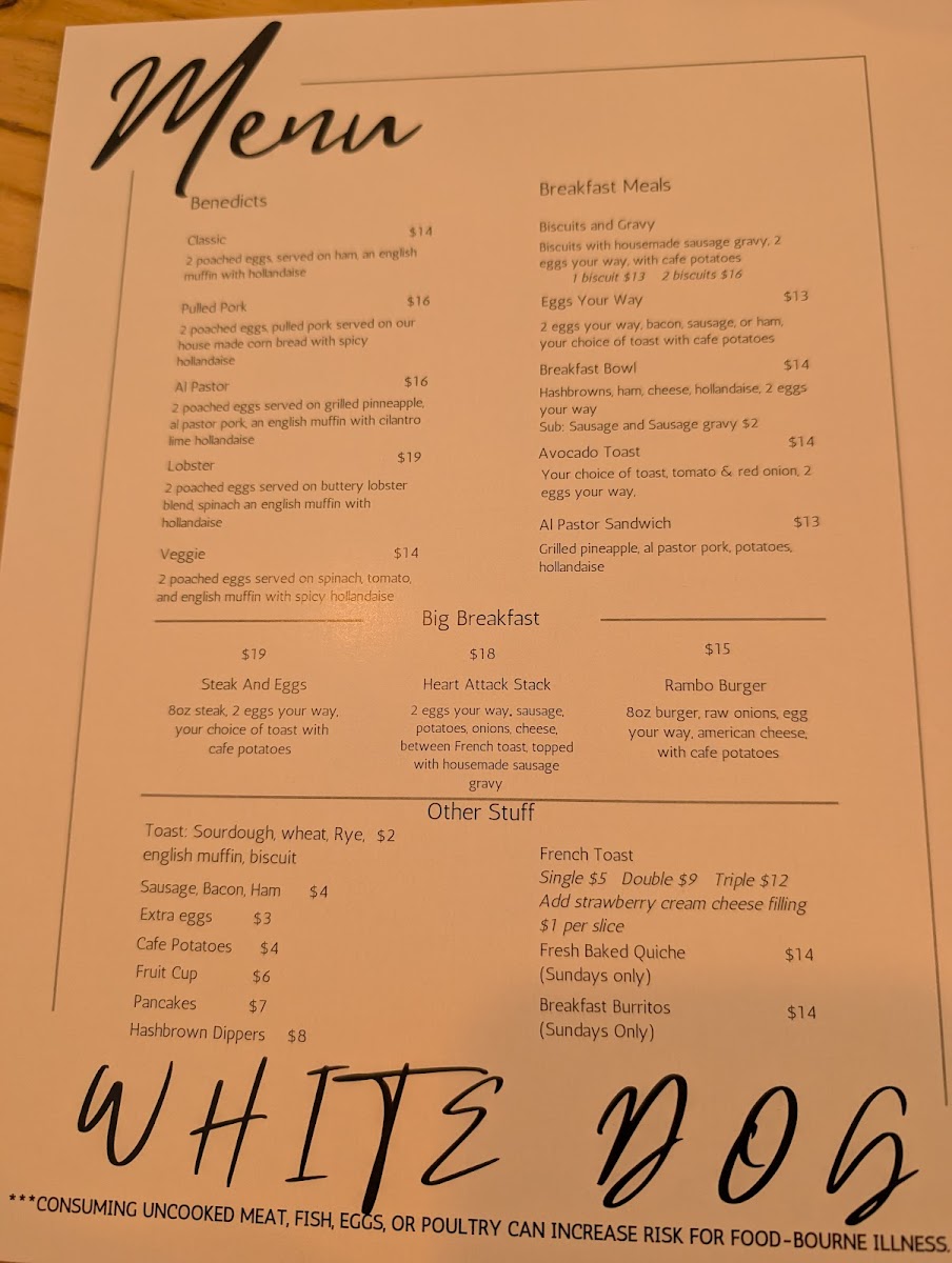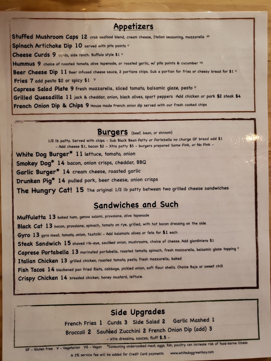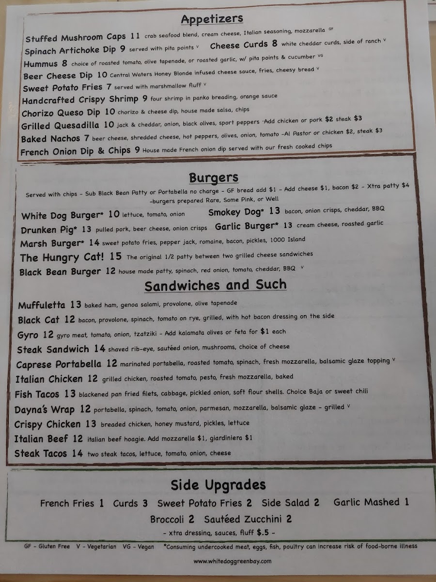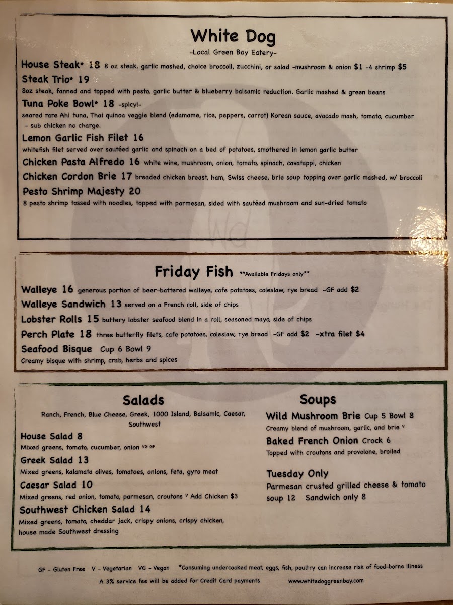 White Dog, Local Green Bay Eatery Menu (2025 Update)